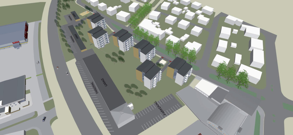 Den idé vi har är indelad i två etapper varav man skulle kunna färdigställa den första utan att påverka verksamheter som idag finns i området i större utsträckning. Beroende på våningsantal kan man få in ett 75-tal lägenheter av mindre karaktär i varje etapp. Totalt alltså 150 lägenheter med mindre än 15 minuters gångväg till centralen. Etapp 1 är vi beredda att börja med så fort vi får tillstånd om trycket på lägenheter fortsätter vara högt.